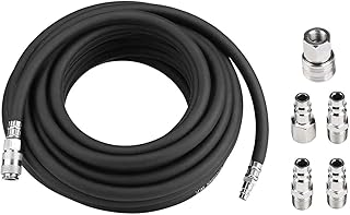 Druckluftschlauch 15m, Druckluftschlauch Gummi, Luftschlauch Kompressor Schwarz, 900 PSI Druckluftschlauch, Luftkompressor Kit mit 5 Teiligem Kompressor Zubehör kit Werkzeug