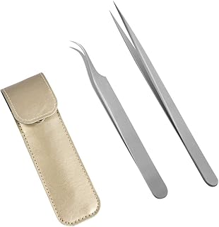 BEZOX Wimpernver Längerungs Pinzette 2er-Set, Gebogene und Gerade Pinzette mit Isolationsvolumen für Wimpernverlängerung, Wimpernverlängerungszubehör-Kit, präzise Pinzette für einzelne Wimpern