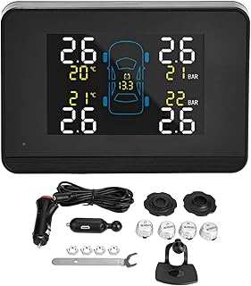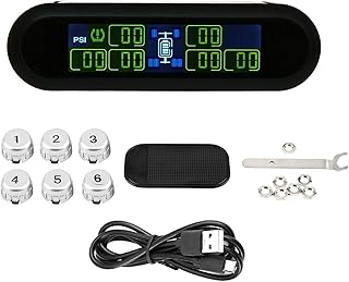 Terisass Reifendrucküberwachungssystem Drahtloser Solar-TPMS-LCD-Monitoralarm mit 6 externen Sensoren für Fast alle Wohnmobile