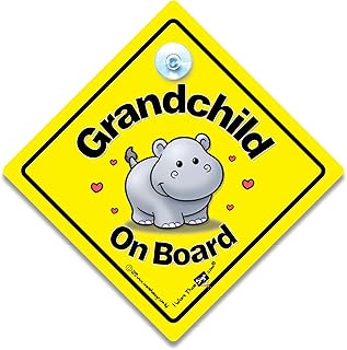 "Grandchild on Board" Schild Baby Nilpferd an Bord, Autoschild, gelb und schwarz, mit Gummisaugnapf