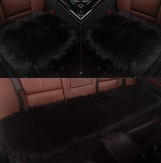 Hava Kolari Autositzbezüge Universal Plüsch 7cm Auto Sitzkissen Schaffell Abdeckung Auto Sitzbezug Modell Universal (Schwarz,C)