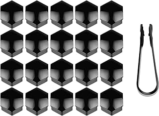 Bememo 20 Stücke Rad Mutter Cap Universal Reifen Mutter Covers mit Entfernung Werkzeug für Autos, Schwarz (19 mm)